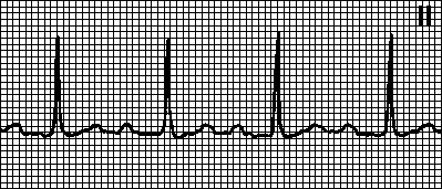 1. Синоатриальная блокада. Удлиненный интервал PP кратен нормальному. Причины: некоторые лекарственные средства (сердечные гликозиды, хинидин, прокаинамид), гиперкалиемия, дисфункция синусового узла, инфаркт миокарда, повышение парасимпатического тонуса. Иногда отмечается периодика Венкебаха (постепенное укорочение интервала PP вплоть до выпадения очередного цикла).